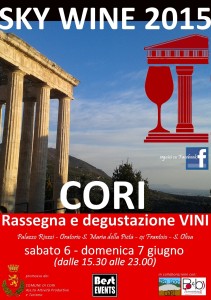 SKY WINE 2015 – Edizione CORI sabato 6 e domenica 7 giugno nella Città di Cori (orario 15.30 – 23.00)